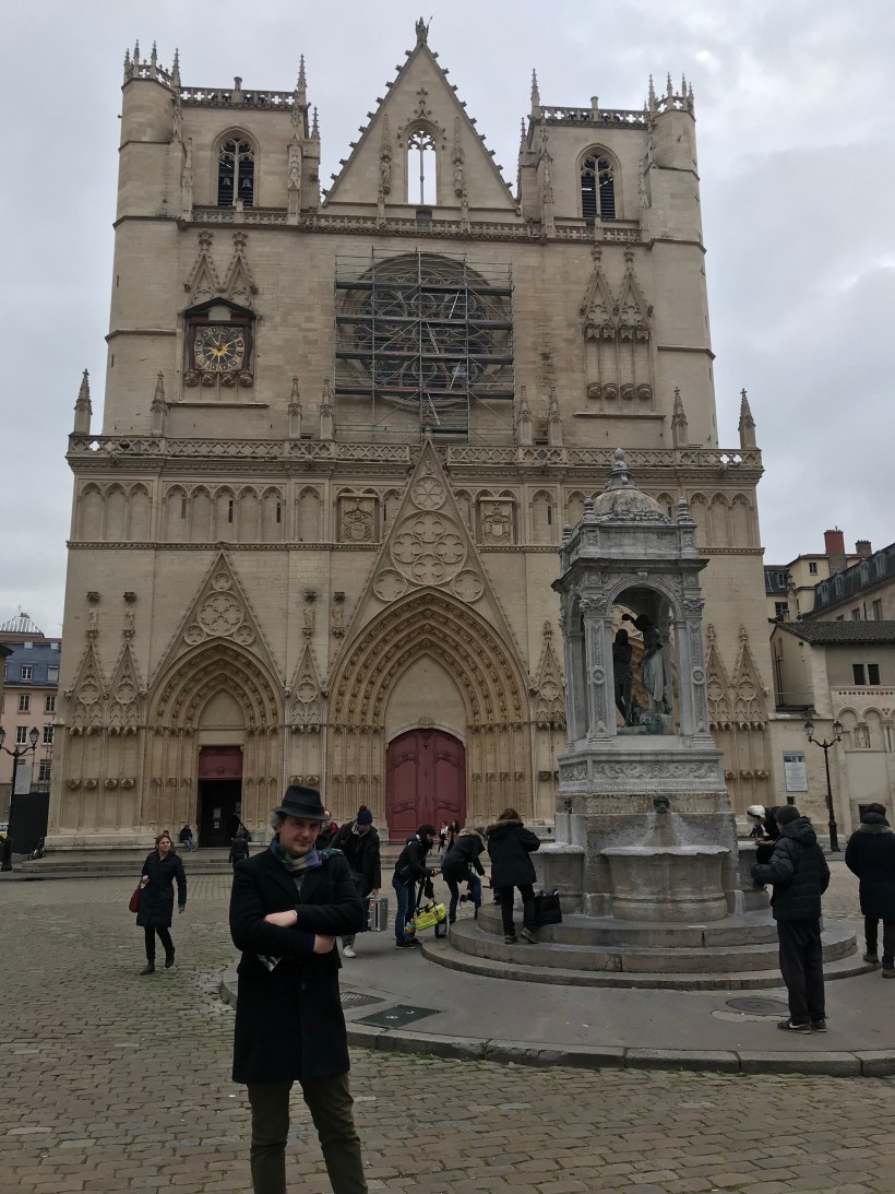Ecco, quella alle mie spalle è la basilica di Notre Dame, meno celebre della sua “collega” parigina ma non meno bella. Qui siamo a Vieux Lyon, la vecchia Lione, cuore pulsante della città sulla rive droite della Saona, cui si accede dalla Presqu’ile con una serie di ponti e bellissime passerelle in ferro battuto