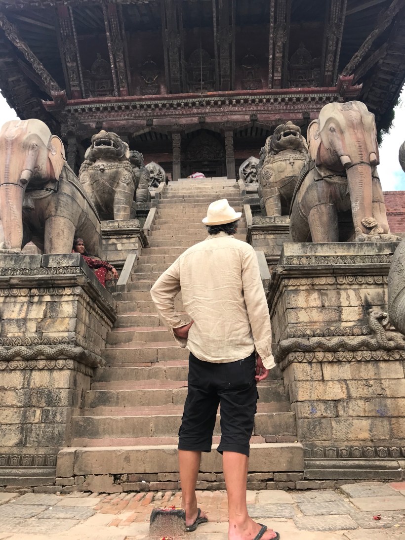 Lo stile architettonico mi pare risenta molto dell’influenza indiana con questi rimandi ad animali sacri quali l’elefante e la tigre. Lo stesso simbolo della città è costituito dai cosiddetti “elefanti erotici” riportati vicino la porta di accesso e su molti templi: pare che guidati dalla forza suprema del Dio Ganesh, sti elefanti trombassero alla grande alla corte di re Malla tanto da generare indomabili guerrieri (quelli raffigurati infatti sempre sotto gli elefanti). La commistione tra induismo e buddismo è quanto mai evidente in alcuni edifici