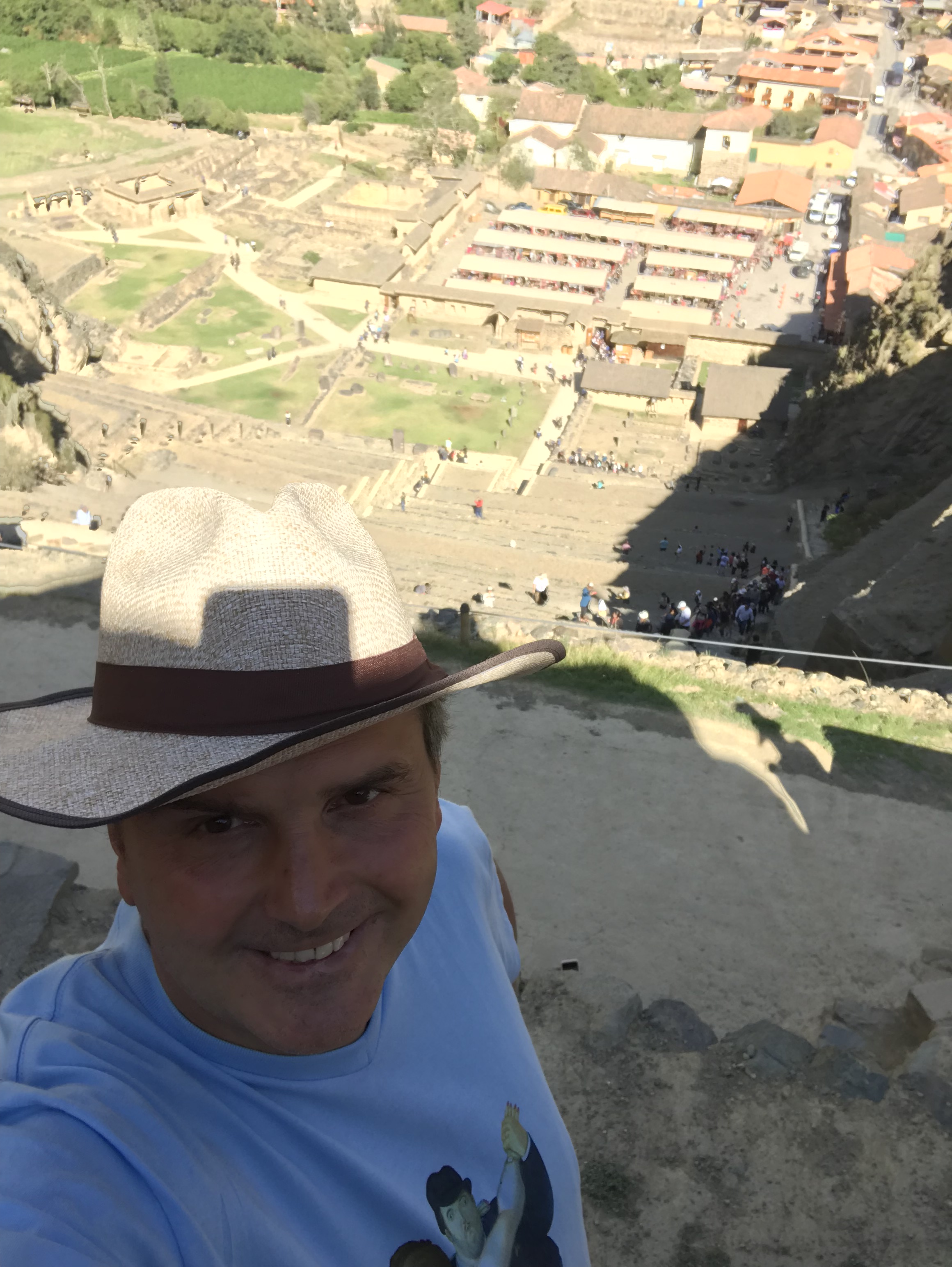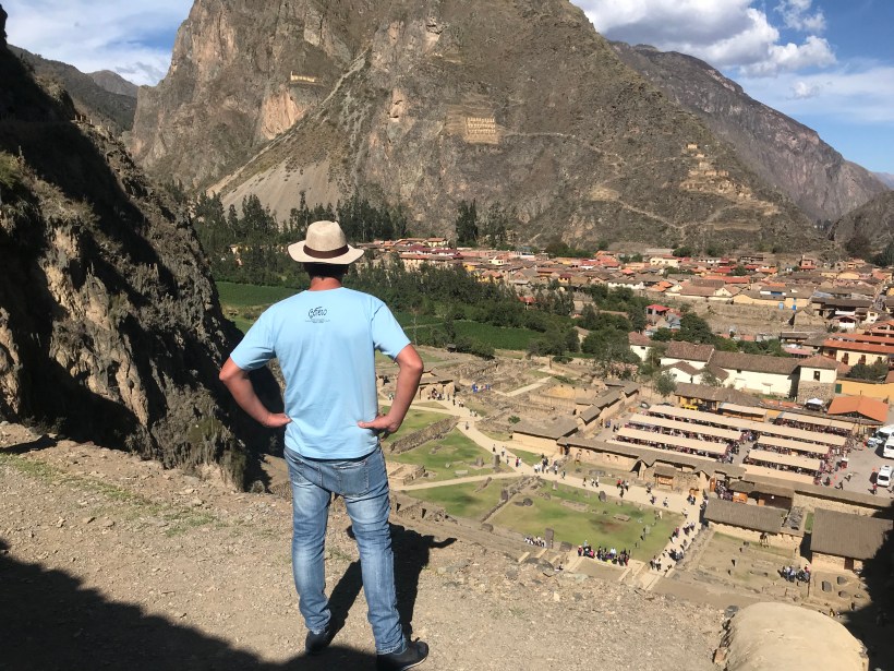anche il paese di Ollantaytambo, appena alla base della imponente fortezza, è assai gradevole a visitarsi, solvato dalle acque del fiume Urubamba che annegó gli spagnoli coi loro cavalli. Col mio solito culo becco un bellissimo alberghetto con vista sulle rovine Inca. A gestirlo è un artista, un certo Wow, che da il nome anche alla pensione, che vanta il libro degli ospiti a suo dire più grande del mondo. Ma l’attrativa principale è data da questa “hall” davvero incredibile,