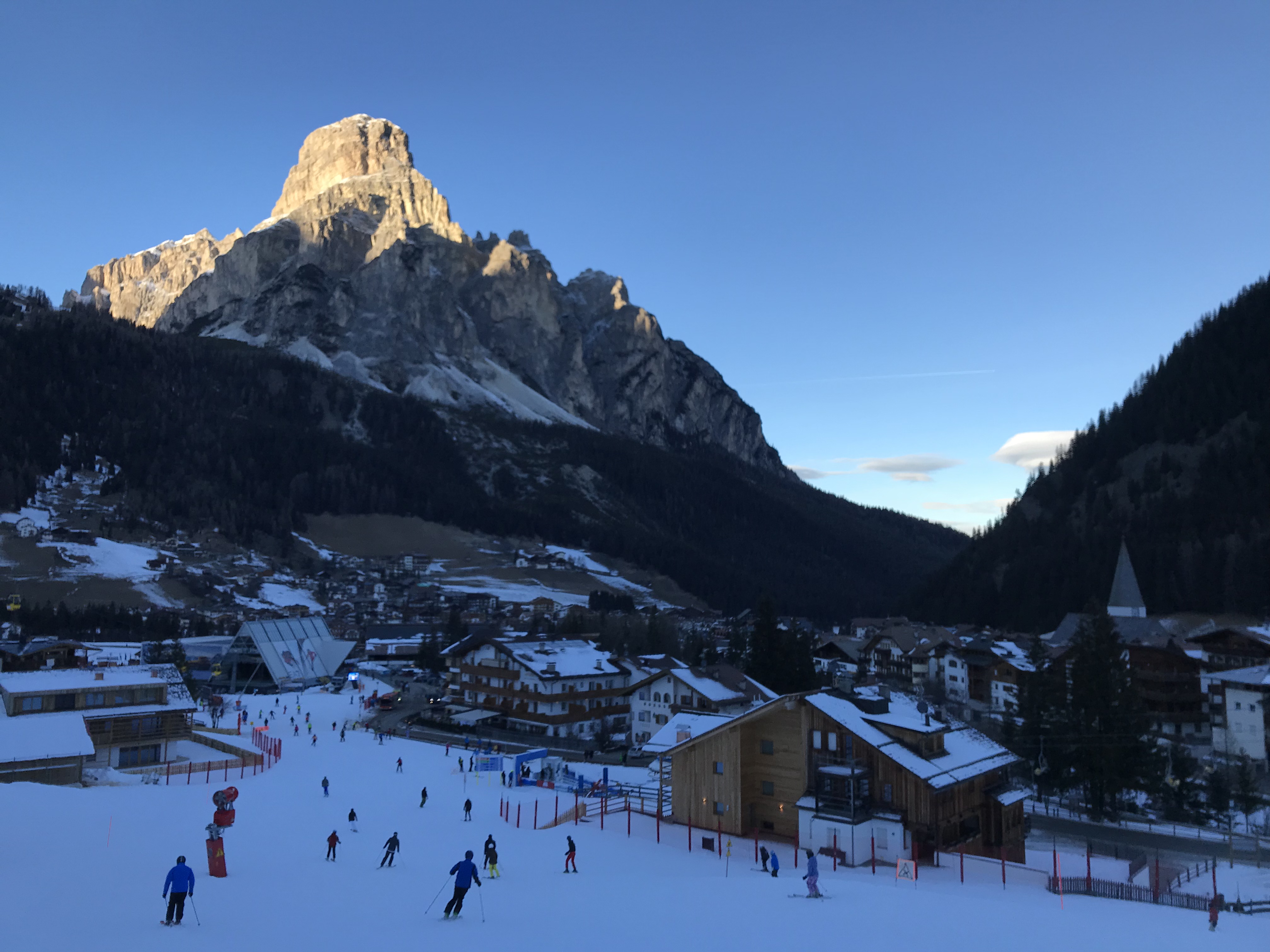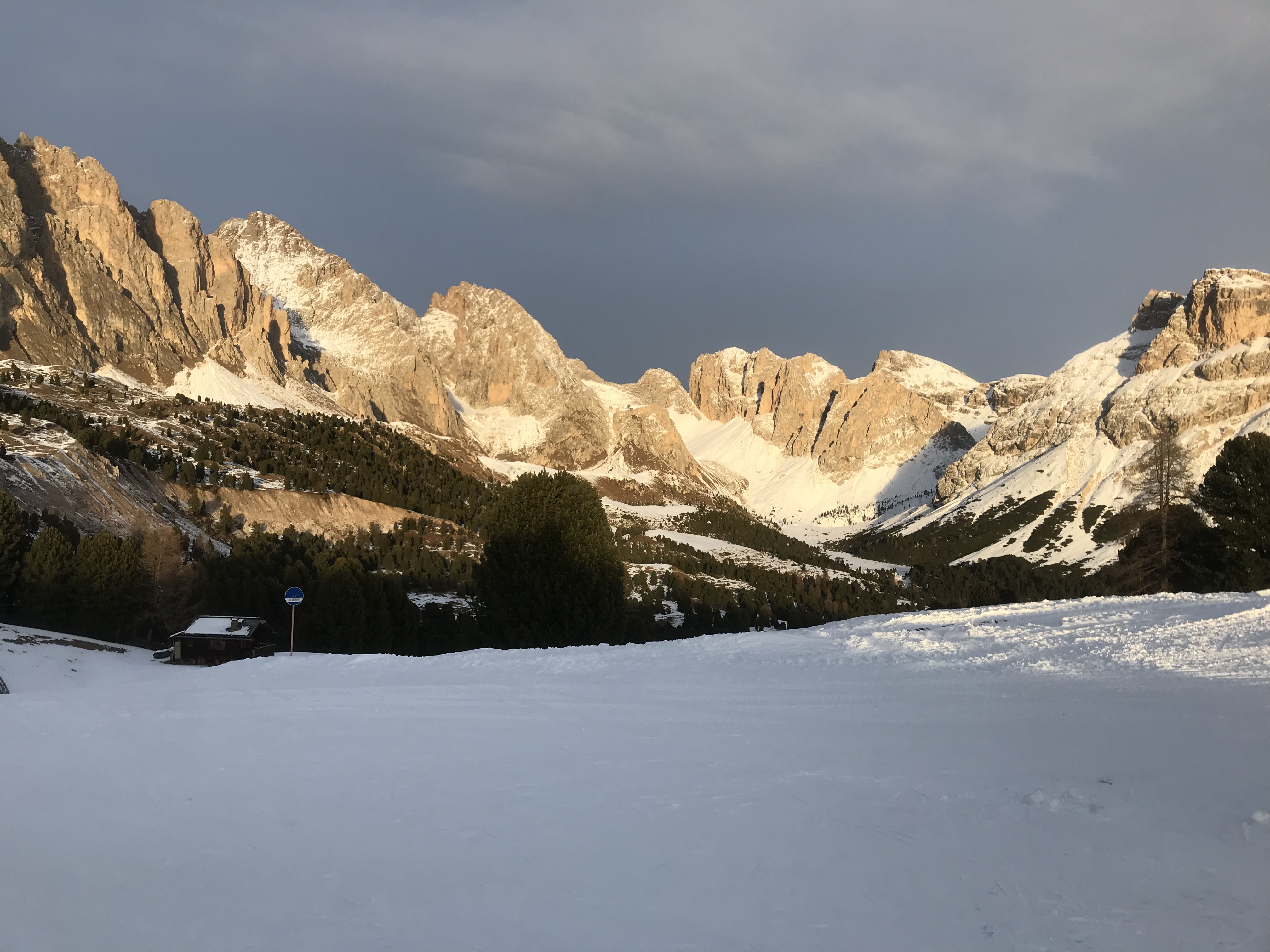 il che significa che siamo esattamente dall’altra parte rispetto al punto di partenza . Questo Campolongo, dove mi fermo a mangiare una schifezza di panino alla salsiccia tra l’altro) è il “dark side of the moon” della Val Gardena insomma. Le gambe sono ormai appesantite e il sole comincia a declinare, tirando giù con se anche le temperature. Resta da percorrere l’ultima valle, l’Alta Badia, con il suo capoluogo Corvara