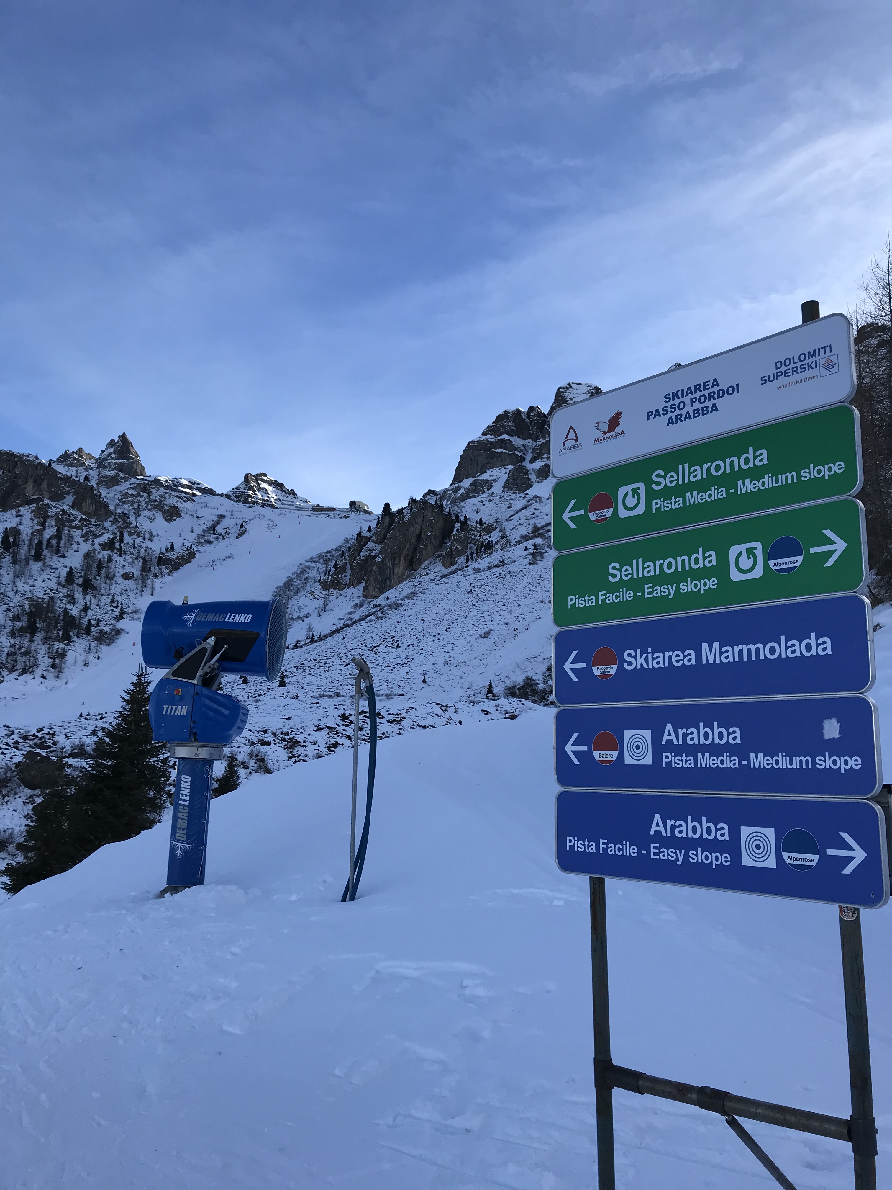 tra l’altro la difficoltà delle piste che da qui precipitano giù verso Arabba è davvero consistente, anche perché l’unica pista più agevole è chiusa. e vi dico che scendere due “nere” di fila dalla Marmolada è bella tosta.