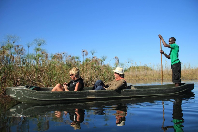 Giorno 12 Qui in Africa australe non potrebbe mai funzionare il trucco che usavo da ventenne per provare a sedurre sgallettate americane in vacanza a Capri , trucco che consisteva nel mostrare alle malcapitate la l’ora celeste del cielo notturno, della quale per la verità avevo una conoscenza sommaria, ma improvvisavo alla grande sospinto dal monsone del testosterone. Non funzionerebbe quaggiù perché il cielo e le sue costellazioni in questo emisfero sono diverse, eppur bellissime: le osservo in questa notte australe che comincia molto presto, quando solitamente a Capri manco e’ iniziata l’ora dell’aperitivo, dalle 18:30 circa per capirci. E’ tutto il ritmo di vita qui in queste remote regione della terra che ha un ritmo completamente diverso dalle estati del l’occidente, con andate a dormire ad orari nei quali manco si è ancora fatto la doccia per uscire la sera in Italia e sveglia a orari antelucani. Ma è bellissimo così, questa terra e’ contemplazione, meditazione e tanto altro. L’Africa, terra inesplorata e selvaggia, mi sta rapendo il cuore come immaginavo, ma ci capisco ancora poco: e’ come una bellissima donna che ti capita tra le mani, troppo bella, e tu sai che perciò può sempre scapparti via, e ti delizia e ti smarrisce ad ogni istante. Di giorno la contempli, la notte ti terrorizza: quando cala la notte africana le cose cambiano radicalmente e ciò che sentivi tuo di un tratto ti annichilisce e spaventa. Qui nel delta dell’Okawango la volta celeste si riflette nella laguna in un incanto senza tempo, un tappeto di stelle senza uguali ma tutto intorno è’ dura: la rude guida di questa spedizione si congeda da noi con un bell’augurio, lo stare attenti ai serpenti potenzialmente mortali che lui ha avvistato in duplice copia giusto vicino le nostre tende. Si tratterebbe di un esemplare della specie cd “Puff adder”, un nome da rapper o da dj Figo di qualche discoteca di Ibiza che invece racchiude pochi cm di cazzimma e di veleno capaci di mandarti al creatore con un morso. Per capirci, qui siamo davvero nella Hall of Fame dei serpenti velenosi, questo Puff adder sta nella top ten ma ha davanti altri fenomeni quali Black Mamba, Spitting Cobra (quello che ti sputa negli occhi il veleno per accertarti e poi ti ciacca), vipera di Russell e un’altra formazione di campioni, tutti qui per una all star parade. A questo punto percorrete al buio una cinquantina di metri di rovi, ficcatevi in una tenda e con la luce fioca di un cellulare cercate tra vestiti, sacco a pelo, scarpe un anfratto dove non si sia intrufolato il rettile : e’ dura davvero. Vabbe’, e’ quel gusto per il brivido che certi lesionati mentali come me amando provare quando sono in vacanza. E cmq, gli avvistamenti di animali notturni vicino alla tenda saranno di giorno in giorno una caratteristica imprenscindibile di questo safari. Ad ogni modo la notte passa senza che nessun oviparo mi intinga di veleno il culo e la mattina mi sveglio con davanti un target imprenscindibile: il delta dell’Okawango! Mi sento gasato come un ufficiale nazista che entra a stalingrado e mi dimentico la macchina fotografica. Una piccolo battello a motore si inoltra in una selva di papiri entro cui sono disegnati dei canali, poi la vegetazione si fa troppo fitta e inestricabile, dobbiamo scendere dal battello e salire su un Mokoro, una canoa ricavata da un albero endemico chiamato sausage tree, una sorta di baobab che fa frutti simili a salsiccia dal sapore acido e che solo i babbuini riescono a trangugiare. All’inizio della selva oscura ci attende, come un Cerbero infernale, un gigantesco coccodrillo che ci scruta severo prima di farsi da parte; due facoceri altrettanto simili a fere dantesche combattono per il territorio dimenandosi, poi lo sconfitto scappa come quando si diparte il gioco della zara e il vincitore mi guarda con occhi di sfida, poi si allontana anch’egli. I Mokoro non sono alimentati a motore, sono sospinti da indigeni ma non con remi bensì con dei palilli biforcuti come i legni di un igromante, che gli autoctoni Kavango piantano nel fondo sabbioso per spingersi. Dentro, e’ un dedalo di canali strettissimi senza soluzione di continuità, ove solo loro sanno orientarsi, fino ad arrivare ad un’isola fluviale, detta Amarula e centro della loro società tribale. Come i boscimani incontrati qualche giorno prima, anche loro dipanano un bagaglio di conoscenze infinito: sanno distinguere il sesso di un animale dalle impronte e persino capire da ciò se la femmina sia gravida; ricavano armi e medicine naturali da alberi e radici. Ma rispetto ai boscimani mi sono sembrati una cultura ormai epigonale, che percepisce la sua sconfitta dinanzi ad altri modelli, sono stati ricacciati in questa giungla infernale dal l’avanzata dell’Uomo Bianco, in uno scenario da vecchio western. Il tipo che ci accoglie e ci dispensa informazioni si chiama di nome di battesimo, dico davvero, Information; quello che guida il mio mokoro si chiama Gift ed e’ preposto a raccogliere le mance: sembrano tutti, più che nomi, marchi a fuoco impressi da un regime schiavista. Mi ha sempre affascinato il concetto di frontiera, intesa come limite geografico tra un popolo e un altro: la montagna , il fiume, il mare segnavano un tempo la frontiera tra due popoli, tra il Noi e il Loro. L’Uomo occidentale ha ormai disperso questo concetto trasferendolo in un luogo senza tempo e senza storia come gli aereoporti, lontano dalle frontiere autentiche. Un non-luogo, per dirla con Marc Auge’. Per scappare da questo, da mi hanno sempre affascinato i Balcani con quelle frontiere polverose e insanguinate, nodi attorcigliati di una storia difficile a comprendersi. Qui nell’Africa più remota ho visto invece un’altra frontiera, quella tra due mondi, due mondi che ormai non si uniranno mai, perché uno mangerà l’altro. Una frontiera che ho avuto la fortuna di vedere prima che scomparirà per sempre