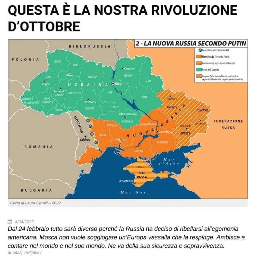 Io credo che esista una concetto da analizzare per comprendere, o almeno provare a farlo, la beninteso folle e criminale ambizione di Putin e del suo ensemble di “conquista”dell’Ucraina o almeno di una porzione di essa: è quello di “Russkij Mir”, di Mondo Russo. E’ un concetto trasversale a tutti i campi del sapere e del vivere a quelle latitudini, che trova sue implicazioni culturali, storiche, letterarie ed è a mio avviso la pietra angolare della nuova geografia di mondo che il Cremlino persegue. Anzi, l’aggettivo nuovo/a suona quanto mai inappropriato agli occhi dell’aggressore, perchè esso ha in quell’ottica (pur distorta che sia) una radice storica consolidata e ineccepibile. Di Russkij Mir è impastata tutta la società russa, è il cemento che lega l’oligarca milionario moscovita al contadino nomade delle steppe siberiane; del Russkij Mir è una proiezione celebre la letteratura russa: “Guerra e pace” di Tolstoy è pieno Russkij Mir, lo è “Anime morte” di Gogol che più o meno si ambienta quasi profeticamente in luoghi o meglio non-luoghi collocabili sulla mappa in quelli degli eccidi di Bucha e dintorni, anche Dostoevskij è puro Russkij Mir. Il concetto trova una sua ovvia esplicazione anche geografica e politica, quindi in una parola geo-politica. Insomma cosa è, dove inizia o meglio dove finisce il Russkij Mir di Putin? Credo che la logica animatrice di base sia da rintracciare in quella categoria del pensiero politico che il grande filosofo della politica Karl Schmitt disegna un secolo fa: é la logica amico-nemico a fungere da scintilla, da confine e da termine ultimo di ogni azione politica. Per Putin ed il Cremlino ogni cosa dentro il Russkij Mir è amica e come tale assoggettabileo meglio da assoggetare, ogni cosa al di fuore di esso si colloca nella categoria “nemico”. I farneticanti propositi bellicosi di distruzione di Londra e dell’ Occidente intero con l’arma atomica , propagandati ai tg della sera ed nei proclami tonitruanti del capo supremo sin dalla prima notte di guerra, per realistici o no che siano, hanno tutti una unica “causale”, un unico comune denominatore: verrete distrutti se interferirete nel Russkij Mir, se metterete il naso nel nostro Mondo Russo. Resta da capire dunque fin dove arriva nella matita del Cremlino tale Mondo Russo ma sta una variabile ancora da inserire sul grafico: con la disgregazione dell’ Urss in una ventina di stati di piccole e grandi dimensioni, almeno 15 miloni di cittadini russi, di lingua e religione russa, restano “intrappolati” in paesi con diversa bandiera, il più delle volte apertamente ostile al vecchio invasore. Parliamo di ex personale amministrativo di Mosca o cittadini intimamente russi a vario titolo trovatisi da un giorno all’altro in paesi che ora si chiamano Ucraina, Lituania, Kazakistan o Turkmenistan, in un’area di mondo sconfinata ed eterogenea. Il progetto di Putin sin dalla sua presa di potere a metà anni ’90 non è quello di riportare questa moltitudine di russi a casa ma di far arrivare la “casa Russia” presso di loro, di “liberarli” dal giogo delle neonate repubbliche usurpatrici del Russkij Mir. L’ambizioso e folle progetto non è perseguito solo verso Ovest ma in tutte le direttrici di marcia dell’ex Armata Rossa: a sud con la “liberazione” del Caucaso dagli Ottomani, dove Putin dispiega un’intera armata per la riconquista di una regioncina grande quanto la Campania chiamata cecenia, a Est dove le truppe russe intervengono in Kazakistan, un paese grande quanto l’intera Europa, a difesa del Presidente fantoccio ed in Mongolia, che nei servizi del meteo (da sempre uno delle cartine la tornasole più indicative di ogni regime) prende il sedicente nome di “Buriazia” : la toponomastica dei luoghi, il ribattezzarli secondo proprie esigenze di dominio è da sempre un corollario delle dittature. Ma torniamo sulla scena del crimine, torniamo ad Occidente: dove finisce il Russkij Mir di Putin ad Occidente? Ad inizio delle ostilità avevo azzardato una lettura della guerra basata sulla disposizione dei fiumi sul territorio, un incedere del conflitto di fiume in fiume, di sponda in sponda contesa: non credo ci avessi sbagliato. Dopo una prima fase dissennata di attacco all’intero territorio ucraino per fortuna naufragata in una clamorosa sconfitta, l’Armata Rossa si è riposizionata sul Don, scegliendo una via di avanzamento terrestre più limitata che gli è storicamente più congeniale: ha già superato il Don e punta seppur lentamente sul secondo grande fiume che taglia in due l’Ucraina: il Dniepr. Potrebbe fermarsi li e posizionare la bandierina del Russkij Mir sulla riva sinistra di esso, lasciando all’Ucraina residua e l’Occidente nemico tutto cio che è situato ad ovest, ma è ormai chiaro che l’obiettivo ultimo è posizionato più ad ovest fino alla riva di un altro fiume. Anche qui la toponomastica dei luoghi parla chiaro: il fiume è il Dniestr, che in Occidente prende il nome di Nistro, nome datogli dai mercanti genovesi giunti fin qui nel medioevo, i quali identificavano chiaramente esso come una barriera, ad ovest della quale esisteva una terra di commerci e scambi culturali, ad est di esso un mondo ignoto ed ostile: il Russkij Mir di oggi, il Mondo Russo nei sogni del Cremlino arriva sulla sponda sinistra del Nistro, dove sorge una sedicente repubblica autoproclamata non certo a caso chiamata Transnistria, uno costola ribelle della Moldavia “traditrice” ed innamorata dell’Occidente. Spostiamo anche l’orizzonte sul mare: una delle primissime operazioni militari compiute dalla forza militare russa è stata l’occupazione in grande stile, con navi e forze spropositate, di una piccola isola, poco più che uno scoglio, situata molto ad Ovest e molto oltre la liena di combattimento terrestre, quasi di fronte alla foce del Danubio ed alla Romania: prende il nome affascinante di Isola dei Serpenti ed è legata
