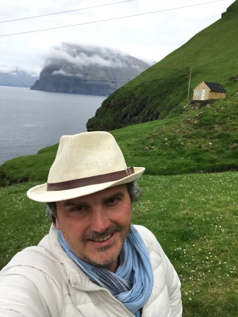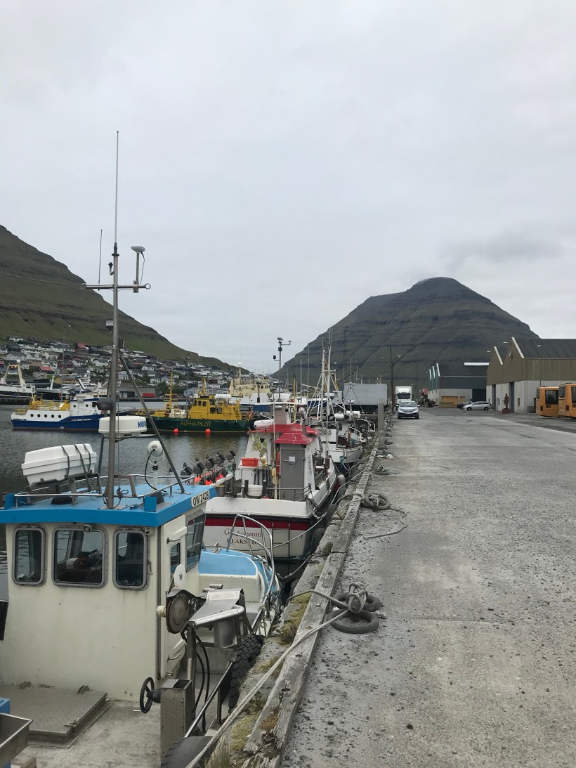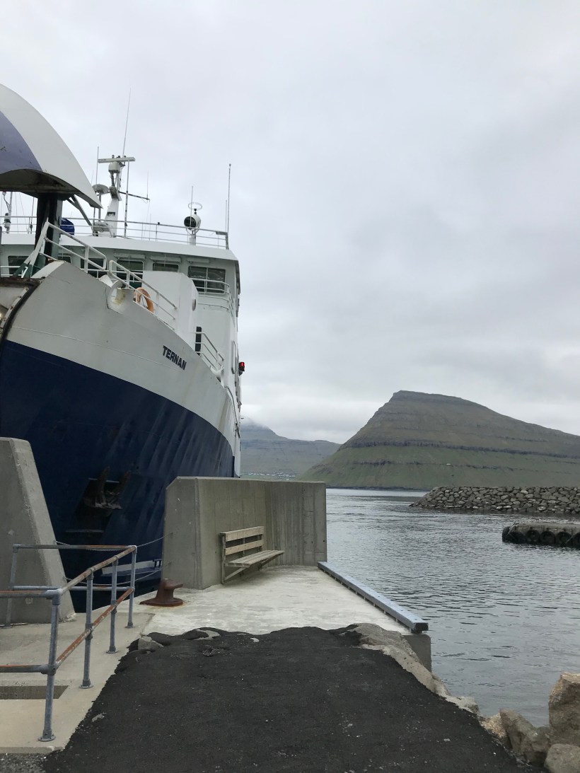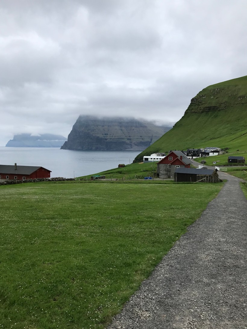 il villaggio più settentrionale delle Far Oer e perciò conosciuto come la “fine del mondo”: in effetti dopo c’è solo mare e poi ghiaccio fino al Polo Nord. Anzi per la verità oltre la collina si stende in direzione nord un altopiano erboso di circa 3km, al termine del quale è situato un altro, bellissimo faro. Ho i minuti contati, perdere l’unico autobus della giornata significherebbe perdere ogni coincidenza col battello e la successiva corriera per rientrare nella capitale, ma parto al gran galoppo. Mi fiondo su sto enorme tappeto verde abitato solo da pecore e uccelli, e che uccelli scoprirò più tardi. Sullo sfondo lo scenario inquietante degli alti promontori delle isole limitrofe