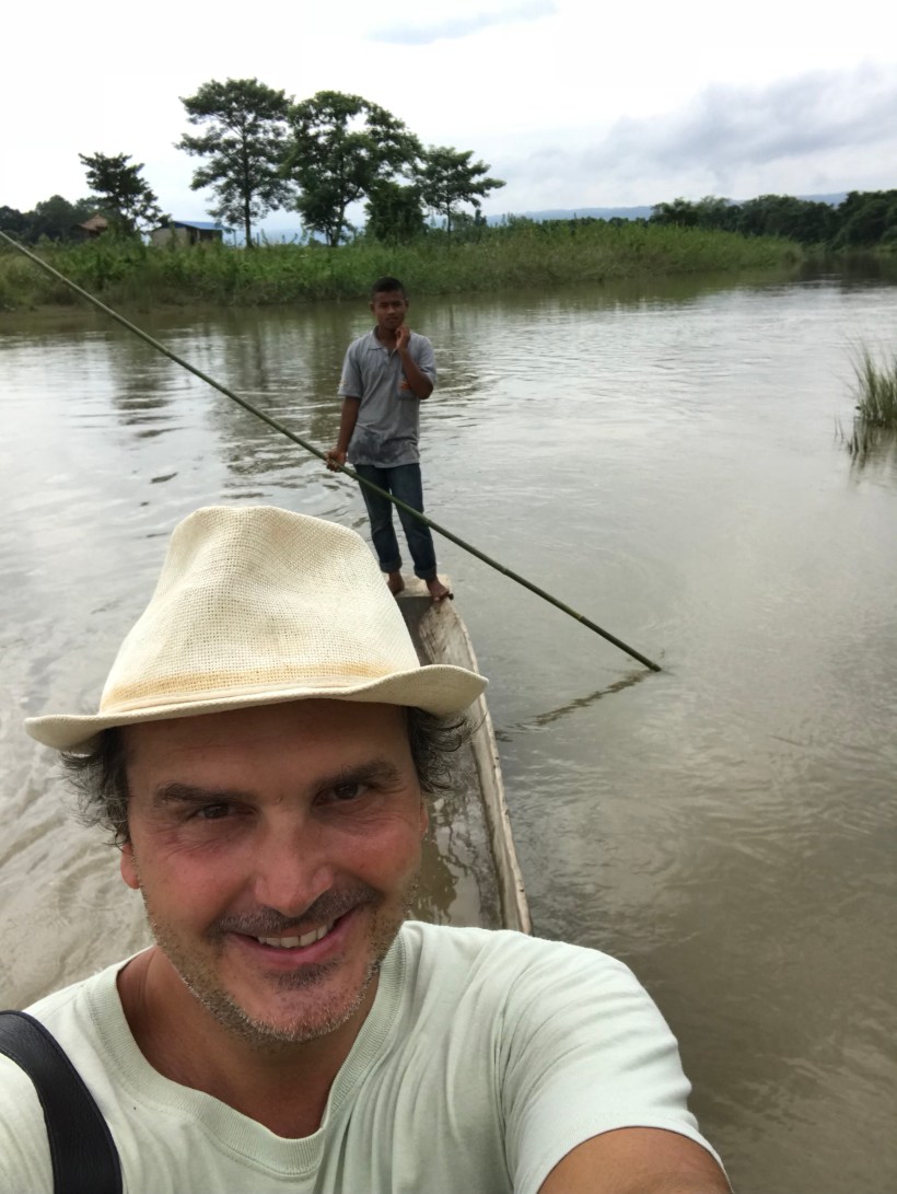 Già, proprio così, senza neanche bene capire dove e come (anzi senza capirlo per niente), alla partenza del bus ho sentito parlare di sto rafting da farsi a metà percorso, scendendo un pezzo di fiume e poi proseguendo il percorso verso il Chitwan o Pokhara all’arrivo del gommone (su un altro autobus?è quello che mi domando) Mah, per adesso la vivo con disinvoltura, so già che sarà una di quelle cose a cui ripenserò una volta a casa fuori dalla mistura di incoscienza e adrenalina che mi pervade durante i viaggi: su un pullman da Katmandu alla giungla del Chitwan ed ad un certo punto peraltro ignoto del percorso scendi a fare rafting su un fiume himalayano in piena. E a chi sto aspettando? In effetti ad un certo momento, con il Trishugli a fianco alla strada che si agita come un demonio, il conducente prende a urlare in una cadenza difficile a distinguersi “Roooftaaang”. È la nostra ora, ci ritroviamo in sei ed è uno di quegli equipaggi che ti rimangono proprio nell’anima: