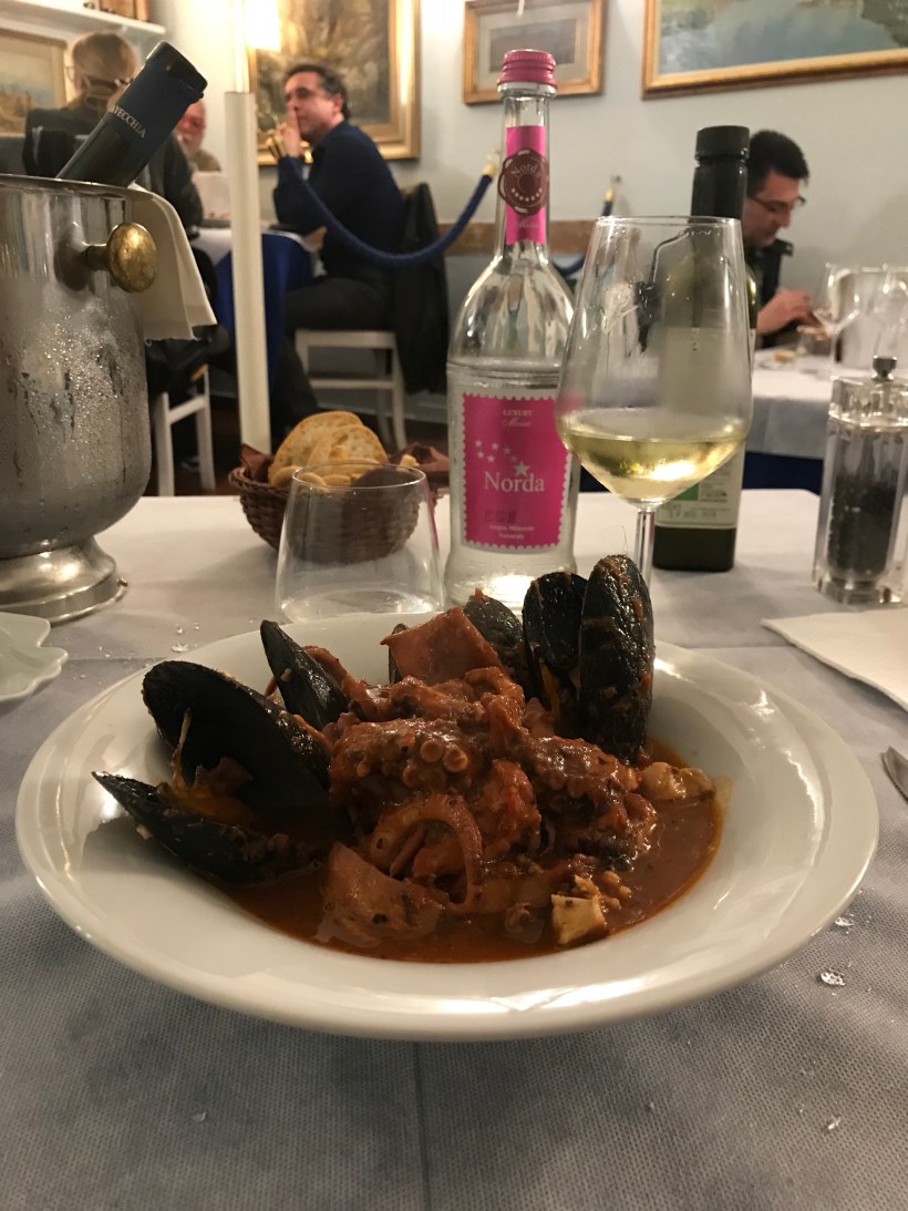 Questa roba qua si chiama “il caciucco”, nome che dovrebbe derivare dal turco “kucuk “, vale a dire “piccolo”. Quello mangiato in questa osteria era ad essere estremamente riduttivi eccellente: era qualcosa di afrodisiaco, inebriante, un viagra naturale. E lo stesso direi del crudo di mare e dello stoccafisso di questa eccellente osteria, il cui recapito sarò ben lieto di fornirvi se vi interessa . Ottimo anche l’hotel dove ho dormito