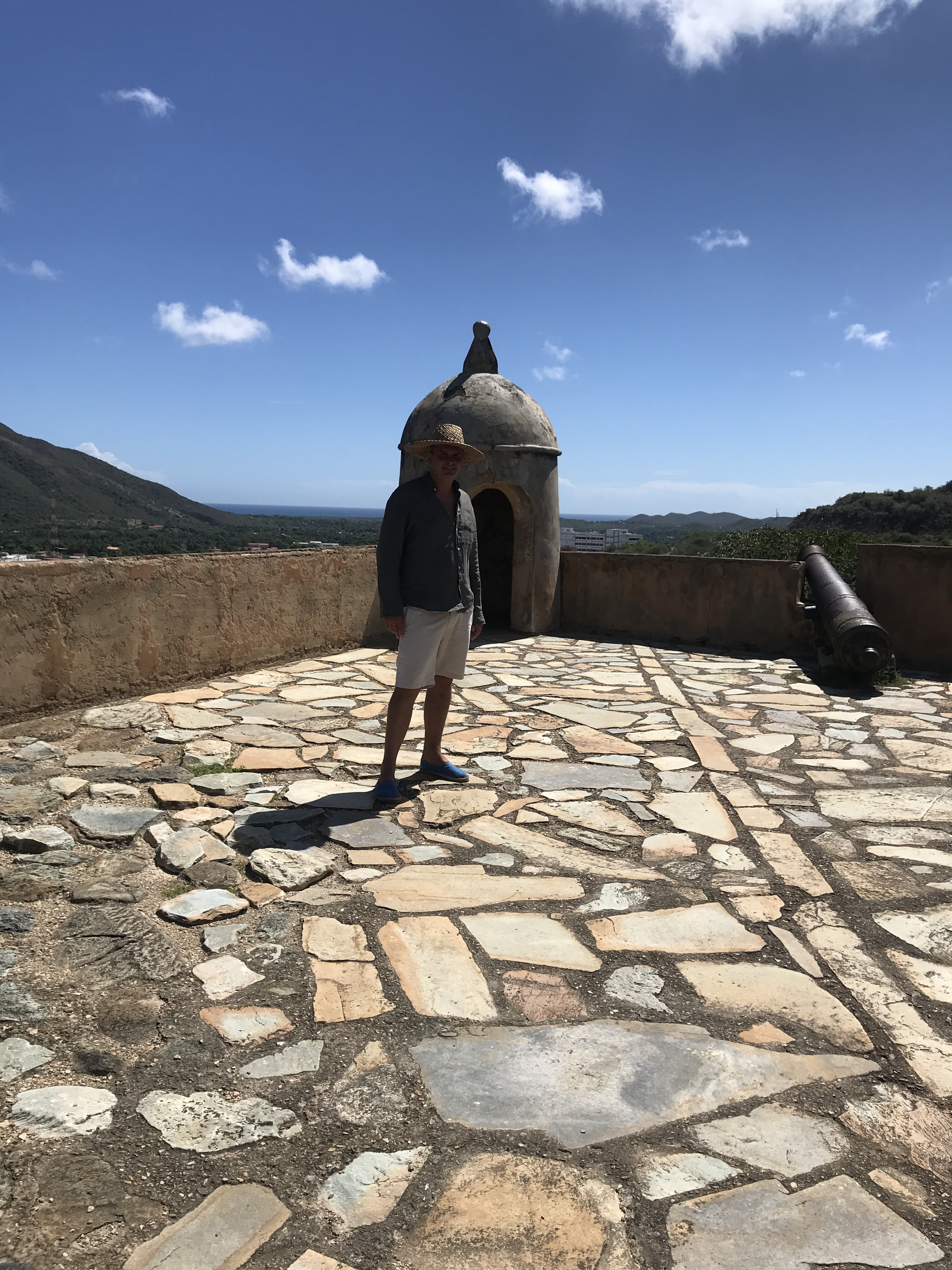 qui insomma stavano gli spagnoli, piuttosto bene armati come si può notare. Ma i locali insorsero, decisi a rompere il giogo della tirannia, e costrinsero con un furbo espediente la legione spagnola ad una battaglia fuori dalle solide mura e alle pendici del monte che rimiro in foto, che da allora prese il nome di Matasiete, perché la sproporzione tra soldati spagnoli e truppe locali era di sette ad uno, quindi ad ogni partigiano locale fu impartito l’ordine o forse la preghiera di uccidere almeno sette spagnoli , matar siete, Matasiete. Siamo nel 1817, il reame spagnolo da qui a poco avrebbe perso la sovranità su tutto il territorio sudamericano ma Isla Margarita fu il primo territorio del continente liberato dagli spagnoli.