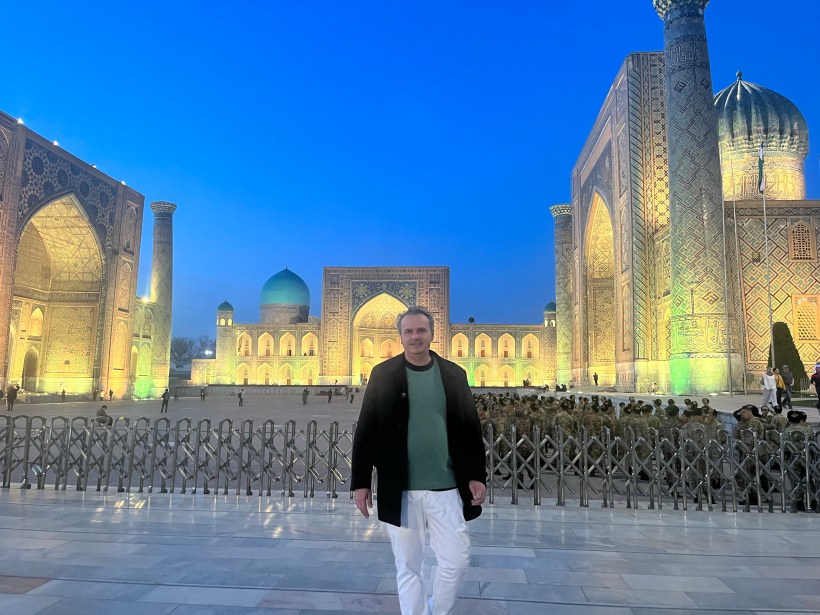 Questi bei versi di un poema del 1913”, intitolato appunto “The golden journey to Samarkand”, ho fatto miei sin dal primo giorno di questa straordinaria avventura, quando la “strada dorata per Samarcanda” era lunga quasi 6.000 km, 5.932 per l’esattezza. Qualche pezzettino, d’accordo, ho dovuto farlo in aereo: l’Iran era praticamente in guerra in quei giorni e, prima di desistere ad attraversarlo, le ho studiate davvero tutte. La gran parte di questa strada l’ho lasciata comunque sotto i mie piedi e ora che sono giunto a destinazione faccio un semplice gesto che nel corso di quasi tre settimane ho scaramanticamente evitato : mi volgo indietro . Mi sale un gorgo di emozioni e momenti confusi e diversi, dai vicoli di Istanbul ai passi di montagna in Albania, il sole di Efeso e il vento ghiacciato sul lago d’Aral ridotto ad una pietraia, la movida di Salonicco e le donne in preghiera nelle moschee di Bukhara, la tempeste alla frontiera turca ed il treno fetido nel deserto uzbeko, le mille e una notte di khiva come un sogno andando indietro fino alla rimpatriata di vecchi amici in Puglia la prima sera, che pare un secolo fa . Alessandro, giunto qui, disse che trovava Maracanda (allora si chiamava così) esattamente come se la aspettava, solo molto più bella . Quella sera bevve smodatamente, più del solito, e trafisse con la lancia il suo migliore amico e miglior condottiero, Clito il Nero che gli aveva pure salvato la vita sul Granico vicino Efeso qualche anno prima . Samarcanda rende folli, con le sue torri bianche che si stagliano contro il cielo oscurato da cicogne in volo che sembrano non saper dover andare. Samarcanda ti fa perdere la direzione, ti fa dimenticare dove è l’est e dove è l’ovest, un po’ come la Calipso che fece smarrire la rotta ad Ulisse. Alessandro pianse tre giorni e tre notti per la sua follia, poi andò avanti fino in India. Io ora posso tornare, volevo la mia Samarcanda, che per me vale un sacco di cose che forse è giusto tenga per me. E l’ho avuta. È stata una straordinaria avventura che da anni disegnavo nella mia fantasia .