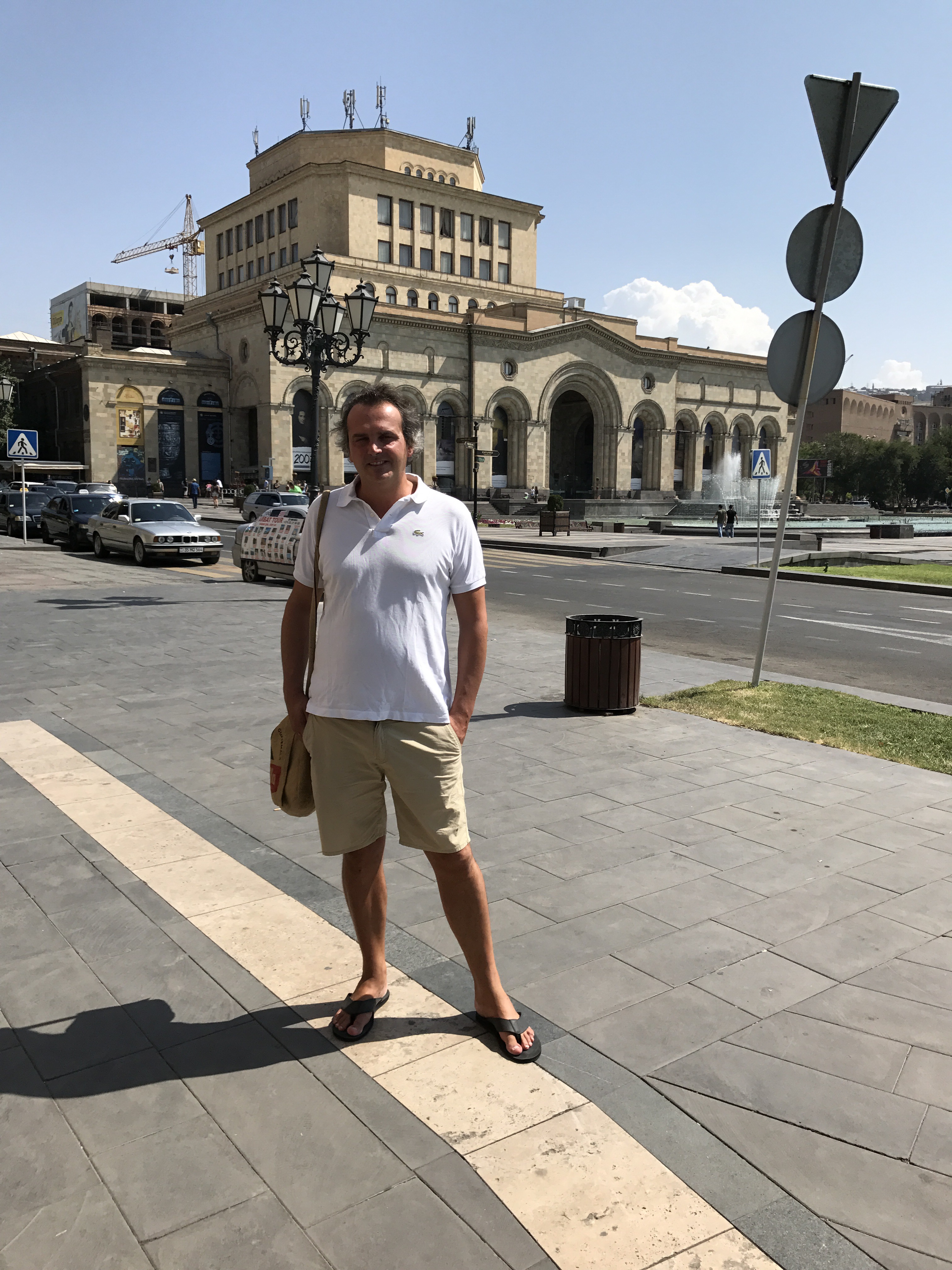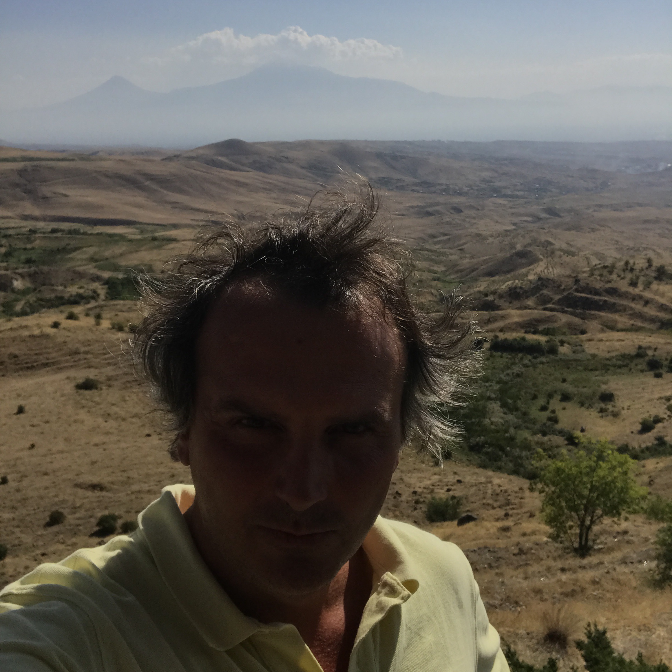 Quello alle mie spalle non è il Vesuvio, bensì il monte Ararat, simbolo nazionale dell’identità armena anche se dopo la guerra ormai giace in territorio turco, come i tre quarti del territorio della Armenia storica. Non è un monte qualunque, è il luogo ove secondo la leggenda si fermò l’Arca di Noè alla fine del Diluvio Universale, un luogo ove appunto si affacciò agli uomini e a tutte le specie viventi la Speranza uscita dal Vaso di Pandora. Forse stiamo confondendo leggende diverse ma a me piace tanto così. La Fantasia al potere! È stato un viaggio bellissimo