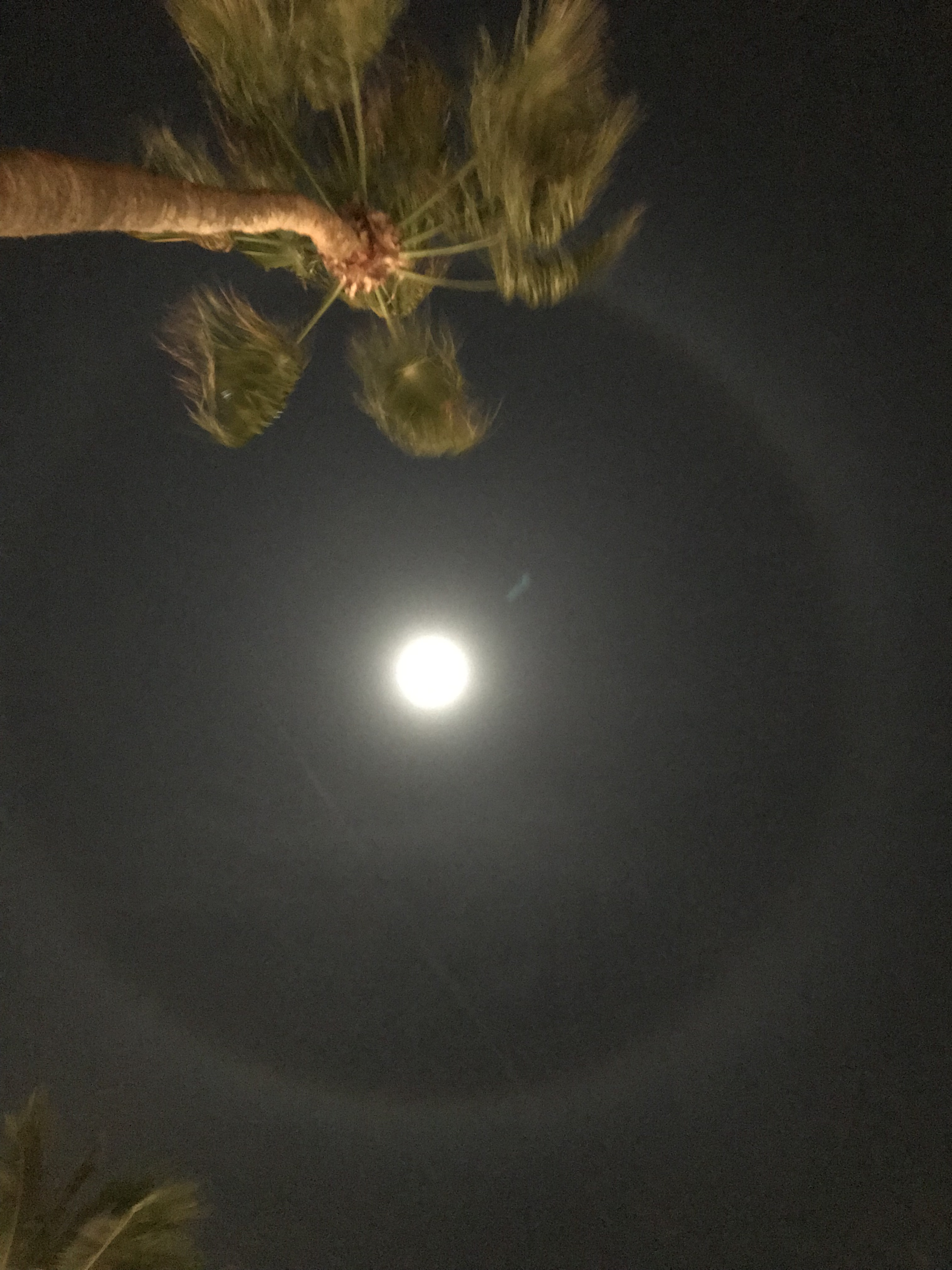 Ah e poi la luna: guadate qui che strano effetto crea, complice forse la vicinanza all’Equatore, che la pone così come il sole, verticalmente sopra le nostre teste
