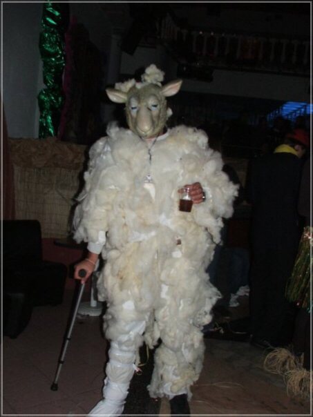 Credo che la mia vita sociale sia stata contrassegnata da una serie piuttosto lunga di episodi tragicomici che sono valsi a farmi acquistare una certa locale notorietà dal sapore agrodolce, ovvero a metà tra il farsesco e il serioso. Tra di essi potrei sicuramente annoverare quello di quando, molti anni orsono vestito per il Carnevale da pecora zoppa, affrontai, al grido di guerra di “sono un avvocatooo” , due operatori ecologici che volevano condurre due miei amici in commissariato per un atto di teppismo. Credo vada a sto punto riproposta anche una vecchia foto dell’epoca volta a ricreare il pathos della scena.