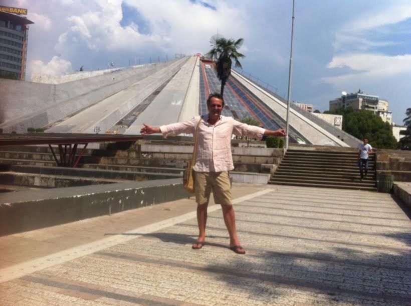 Questo era Enver Hoxha e Tirana e’ ovviamente la sua figlia aberrante, il Minotauro partorito dalla sua follia: la povera citta’ e’ martoriata da una psicotica architettura inneggiante ad una tronitruante grandeur, con piazze ed edifici squadrati e spropositati. Il livello piu’ alto in tal senso lo si tocca con il mausoleo funebre ritratto in copertina, edificato a forma di piramide moderna sulla scia, guarda un po’, dei faraoni egizi….