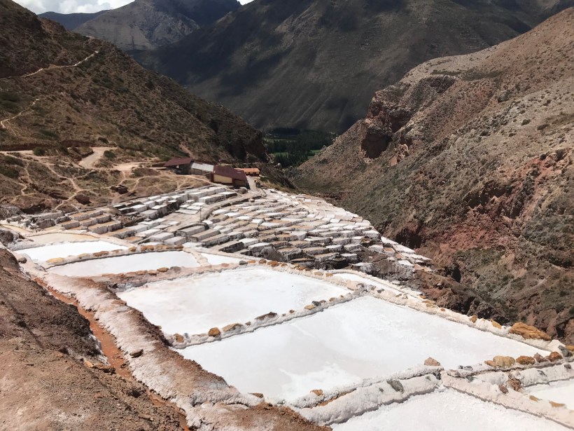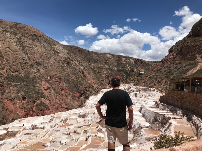 siamo in mezzo a montagne di 4000 mila metri, lontanissime dal mare ma piene di questo oro bianco rimasto intrappolato qui in epoche geologiche precedenti. Il ragazzo mi spiega che questa miniera, ovviamente risalente agli Inca, basta ancora oggi al fabbisogno di sale di tutto il Perù. Gli Inca si sono estinti ma hanno lasciato le basi per lo sviluppo industriale della terra che abitavano. Segue poi un momento che mi ha commosso: il ragazzo entra nella miniera e prende a parlare con una donna che vi lavora