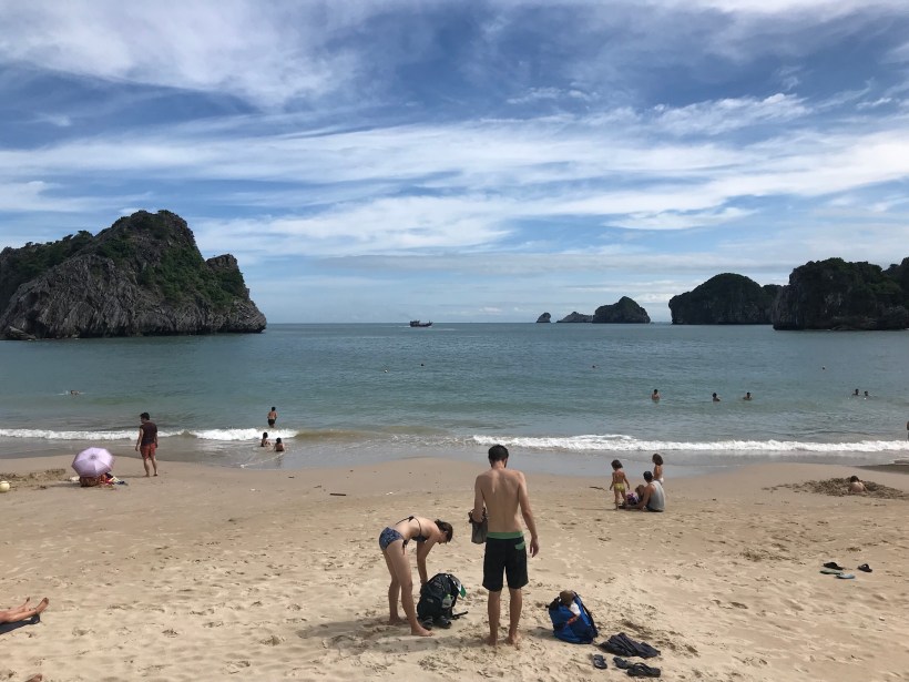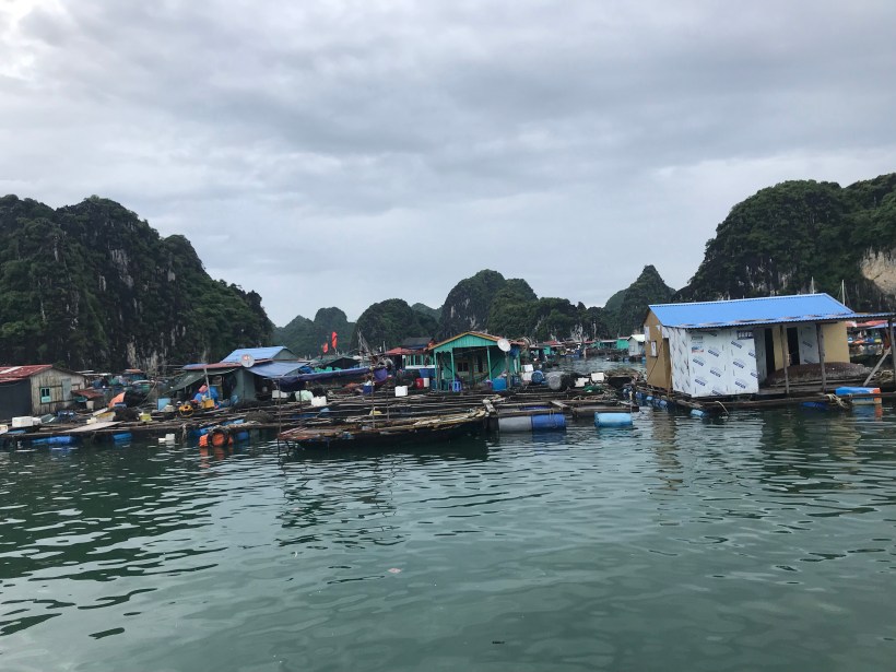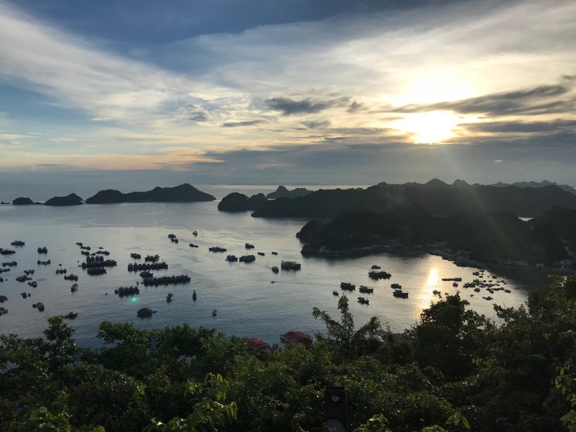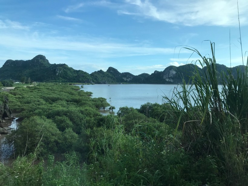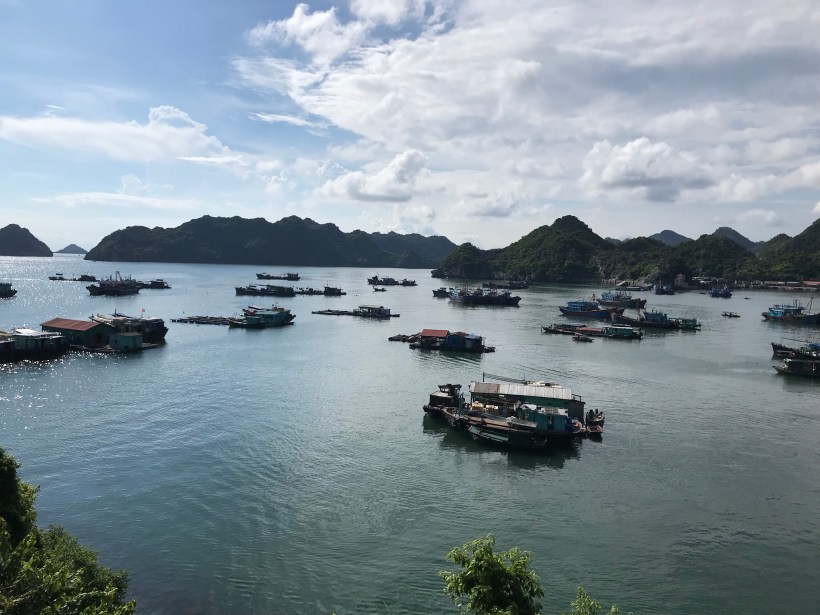 Per me significa essere arrivato dall’altra parte, su un altro mare dopo essere partito dal golfo del Siam. Per chi mangia pane e geografia come me so soddisfazioni! Siamo nella celeberrima Halong Bay, divenuta nota recentemente in tutto il mondo per la “scoperta” degli scenari naturali con picchi calcarei che paiono spuntare come ghiaccioli verdi dal mare anche esso verde ma più chiaro. La prima tappa è Cat ba, che si manifesta subito magnifica